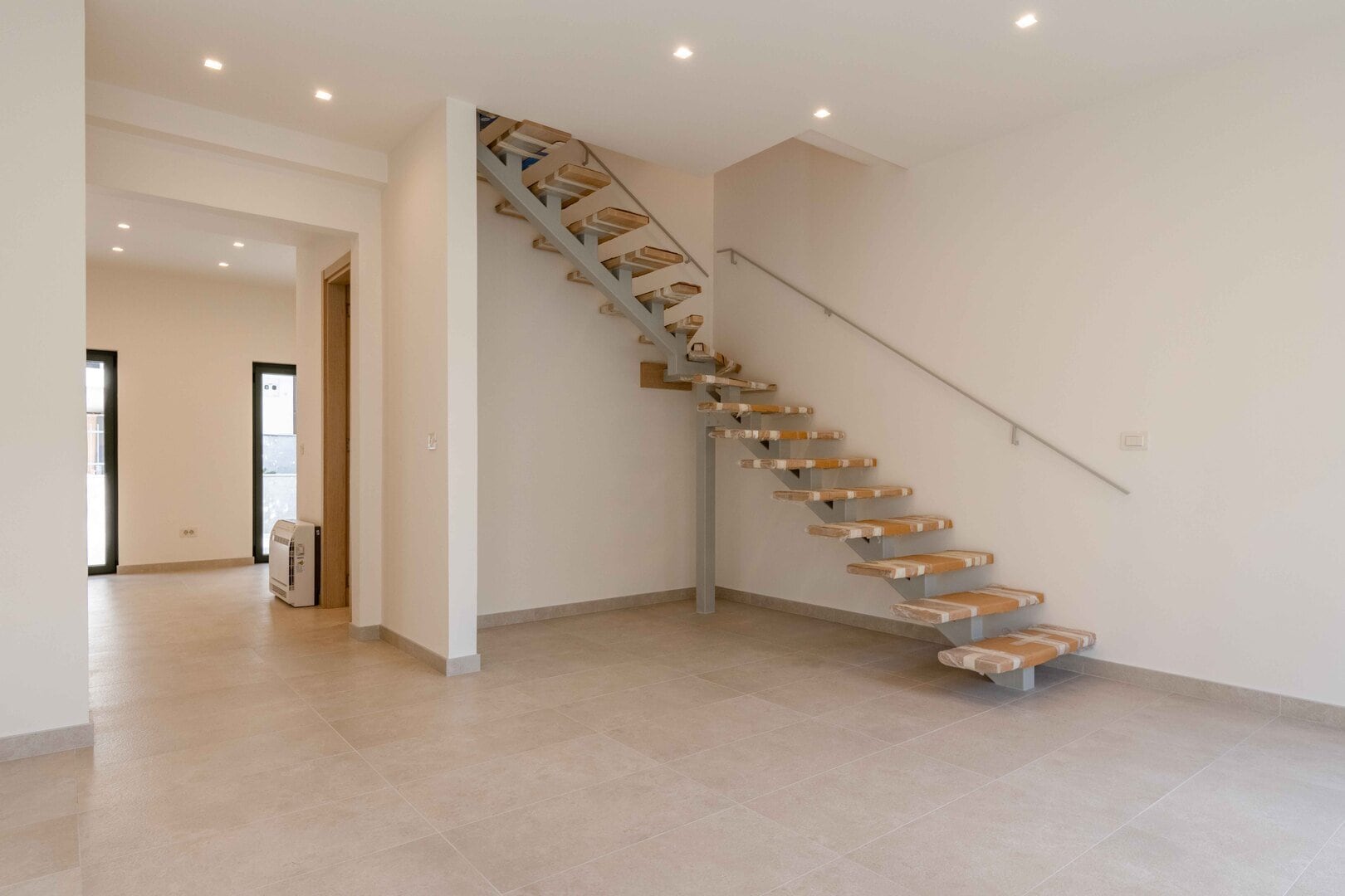 Kuća je organizovana tako da sadrži dva potpuno odvojena stana. U prizemlju je smješten stan površine 55 m², sa dodatnom terasom od 12 m², u potpunosti opremljen luksuznim nameštajem i modernim uređajima. Ovaj stambeni dio obuhvata dnevni boravak sa kuhinjom i trpezarijom, spavaću sobu, kupatilo i prostranu terasu.