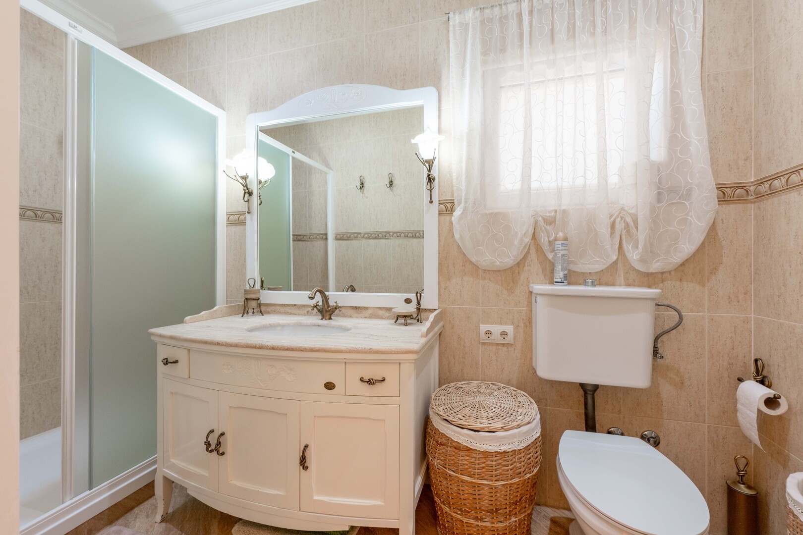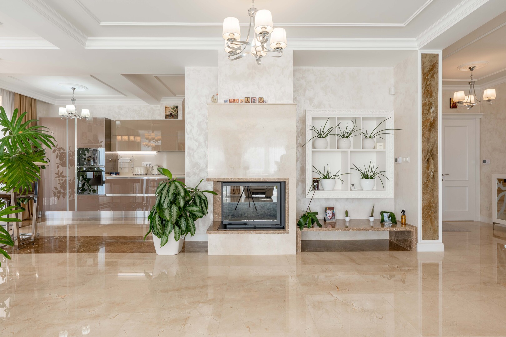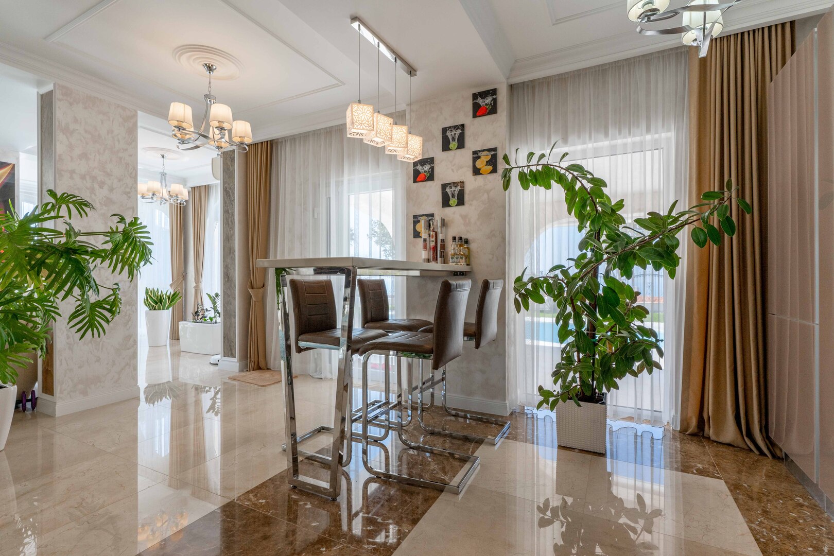 Vila se sastoji od 5 spavaćih soba i 4 kupatila, uz dodatne garderobere (2 odvojena + garderober u glavnoj spavaćoj sobi), kao i ugradne ormare u svim sobama. Enterijer je u potpunosti opremljen, sa mermernim podovima i stepeništem, spreman za useljenje bez dodatnih ulaganja.