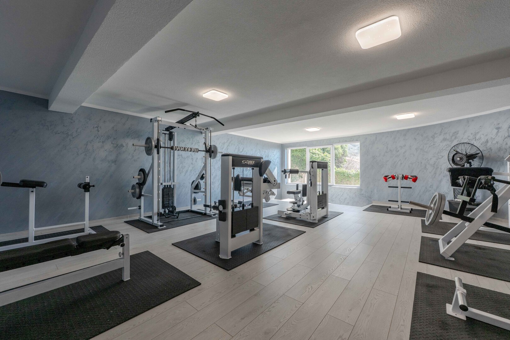 Vila raspolaže sa tri garaže ukupnog kapaciteta za šest vozila, kao i privatnom teretanom.