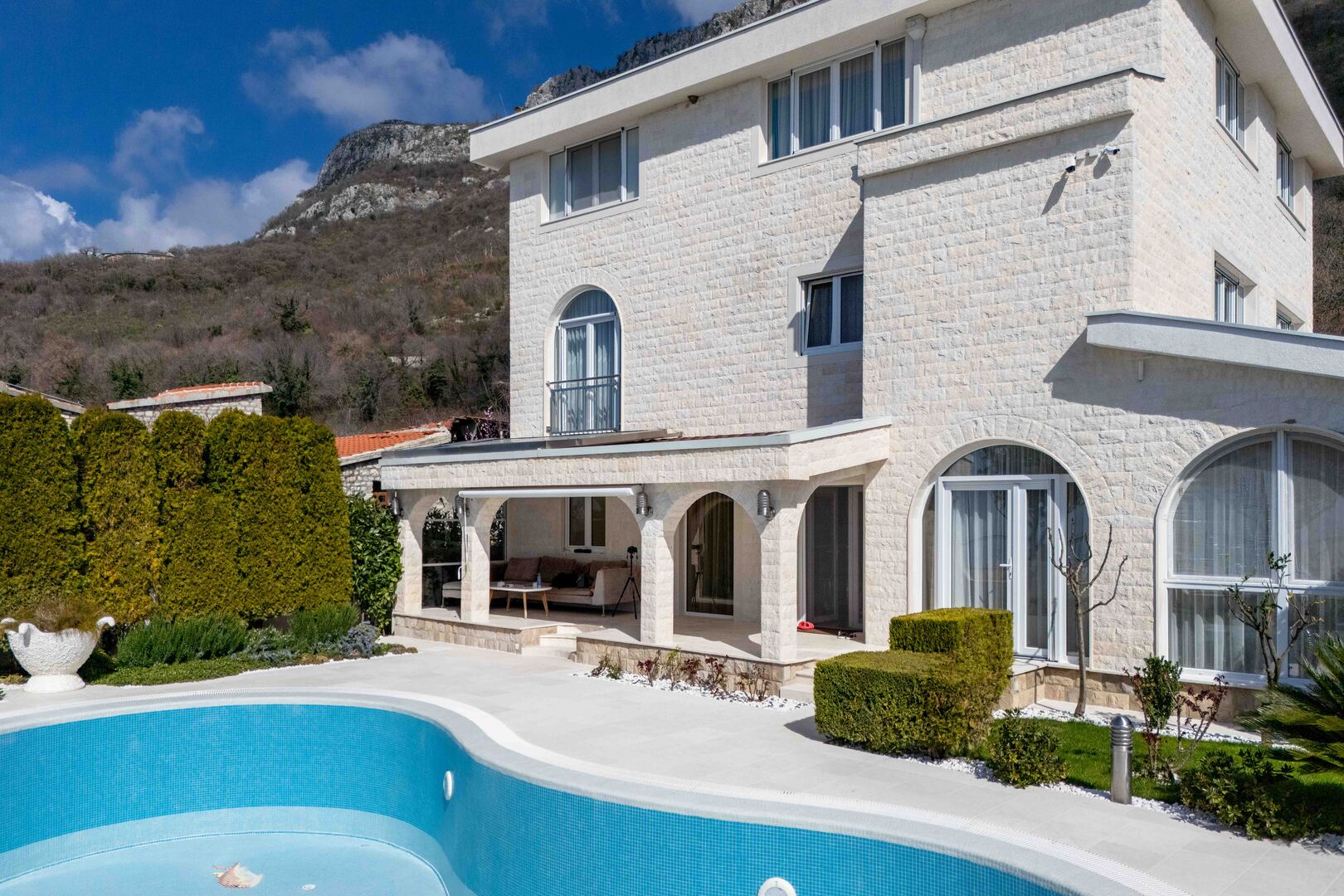 Luksuzna vila ukupne površine 410 m², smještena na placu od 1300 m², sa otvorenim pogledom na more i visokim nivoom privatnosti.