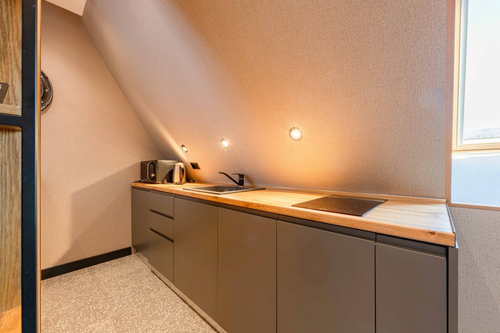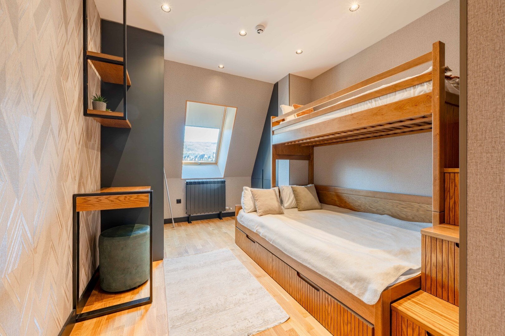 Stan ima ugrađeno centralno i podno grijanje. Sa prozora se pruža izuzetan pogled na Bjelasicu i centar grada- Zgrada ima lift, recepciju, interfon, wi-fi i zajedničku prostoriju za odlaganje zimske opreme (skije, bord itd). U prizemlju se nalazi restoran. Budući vlasnici će imati na raspolaganju garažno mjesto.
