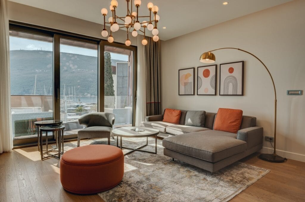 Moderan i svijetao dvosoban stan površine 80 m2 u prestižnoj zgradi Park Residence, na samo nekoliko koraka od Porto Montenegro-a.