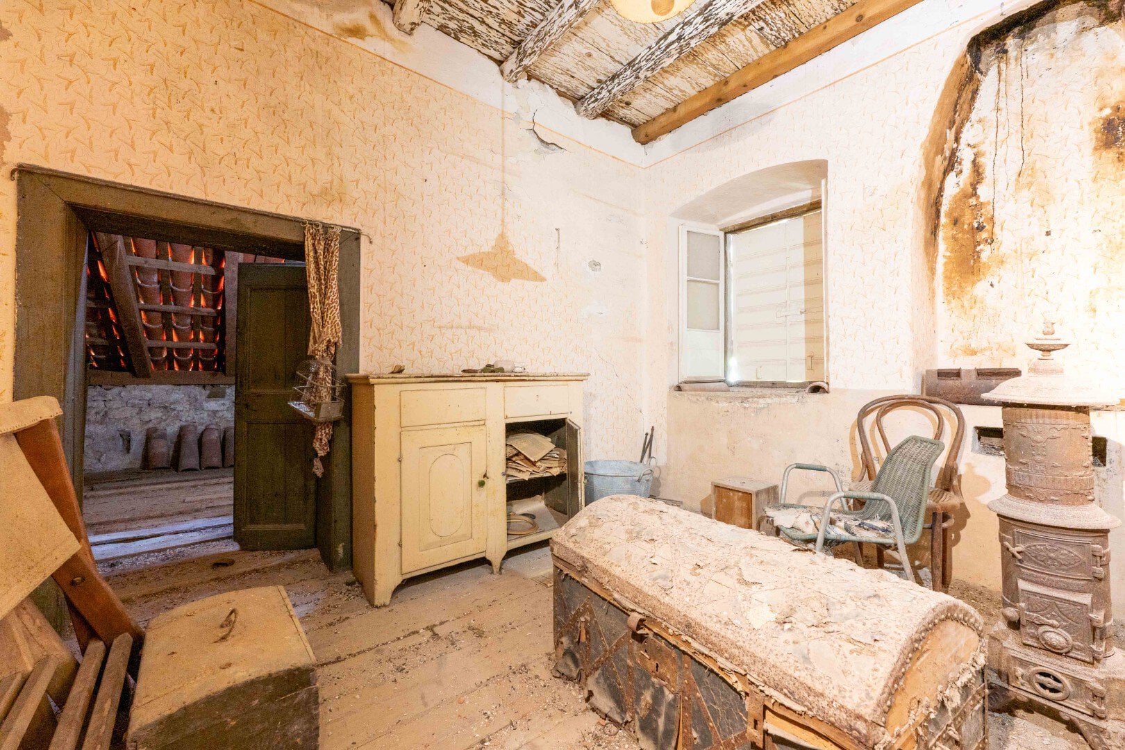 Palata je podijeljena na tri etaže, sa ukupno 4 spavaće sobe, 1 salonom, jednom kuhinjom, dvije velike prostorije u potkrovlju i 1 kupatilom. Uz kuću je i garaža površine 28m2. Uz palatu, u cijenu su uključeni pojedini originalni komadi namještaja, takođe sa potrebnom restauracijom.