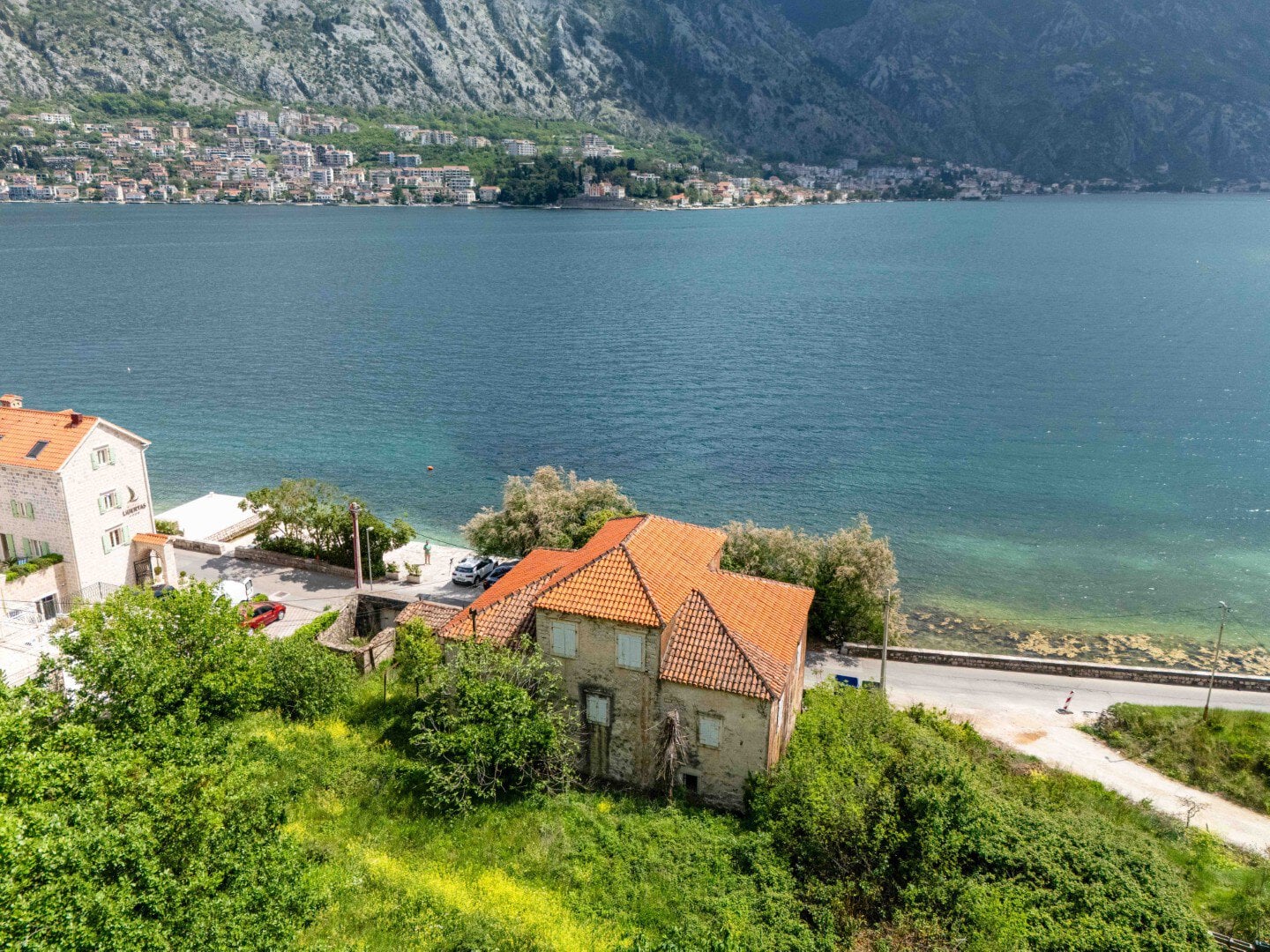 Kamena palata za renoviranje na prvoj liniji do mora, Prčanj, Kotor, površine 300m2, sa velikim zemljištem ukupne površine 1,599m2, sa dovoljno prostora za izgradnju bazena i ljetne terase.