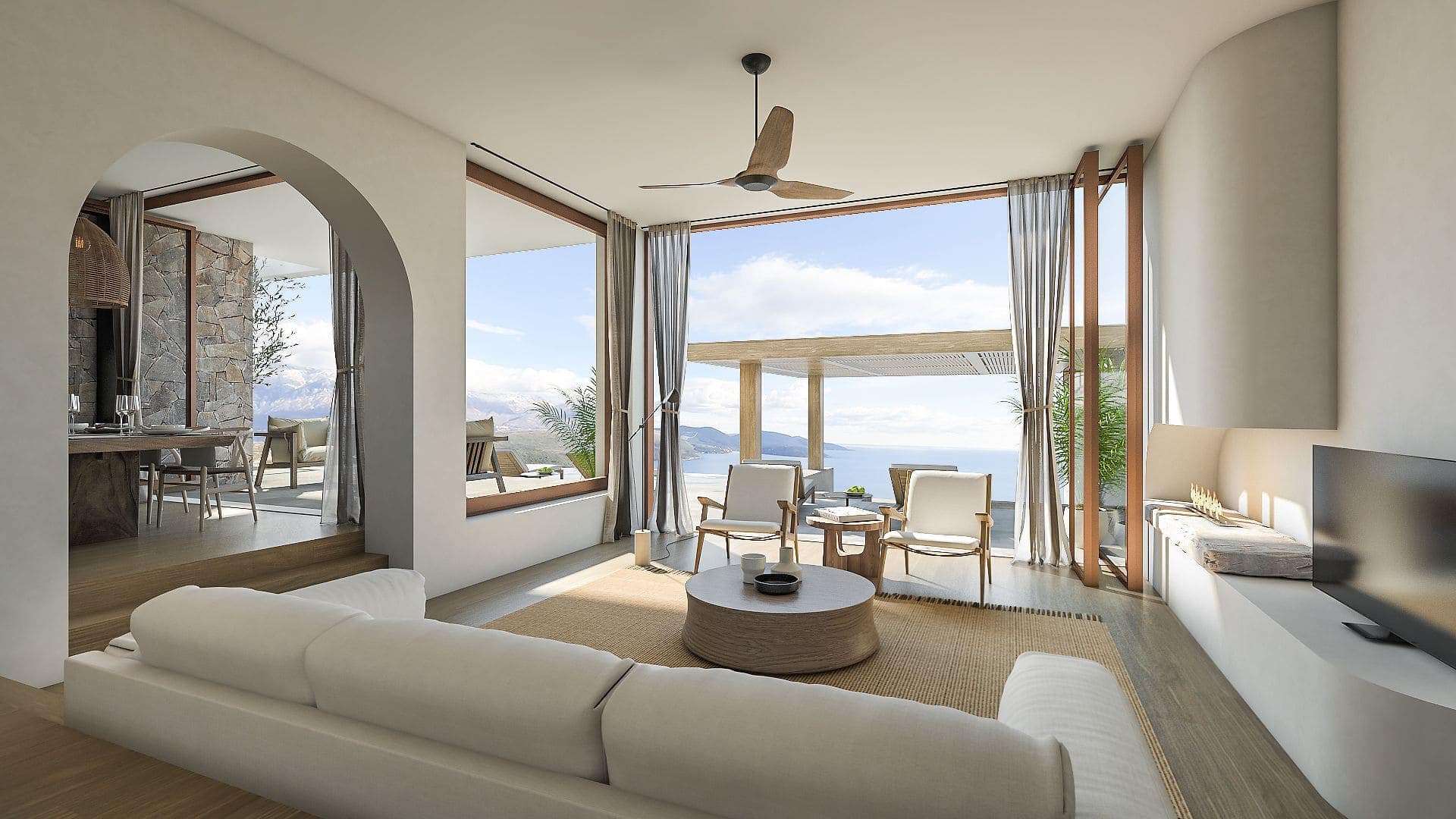 Vila će se sastojati od prostranog dnevnog boravka otvorenog tipa sa kaminom, kao i trpezarijom i kuhinjom opremljenom Miele aparatima, tri spavaće sobe, tri kupatila, gostinskog toaleta i terase sa jedinstvenim pogledom na more i golf rupu broj 5, kancelarijske sobe, vešeraja i tehničke prostorije.