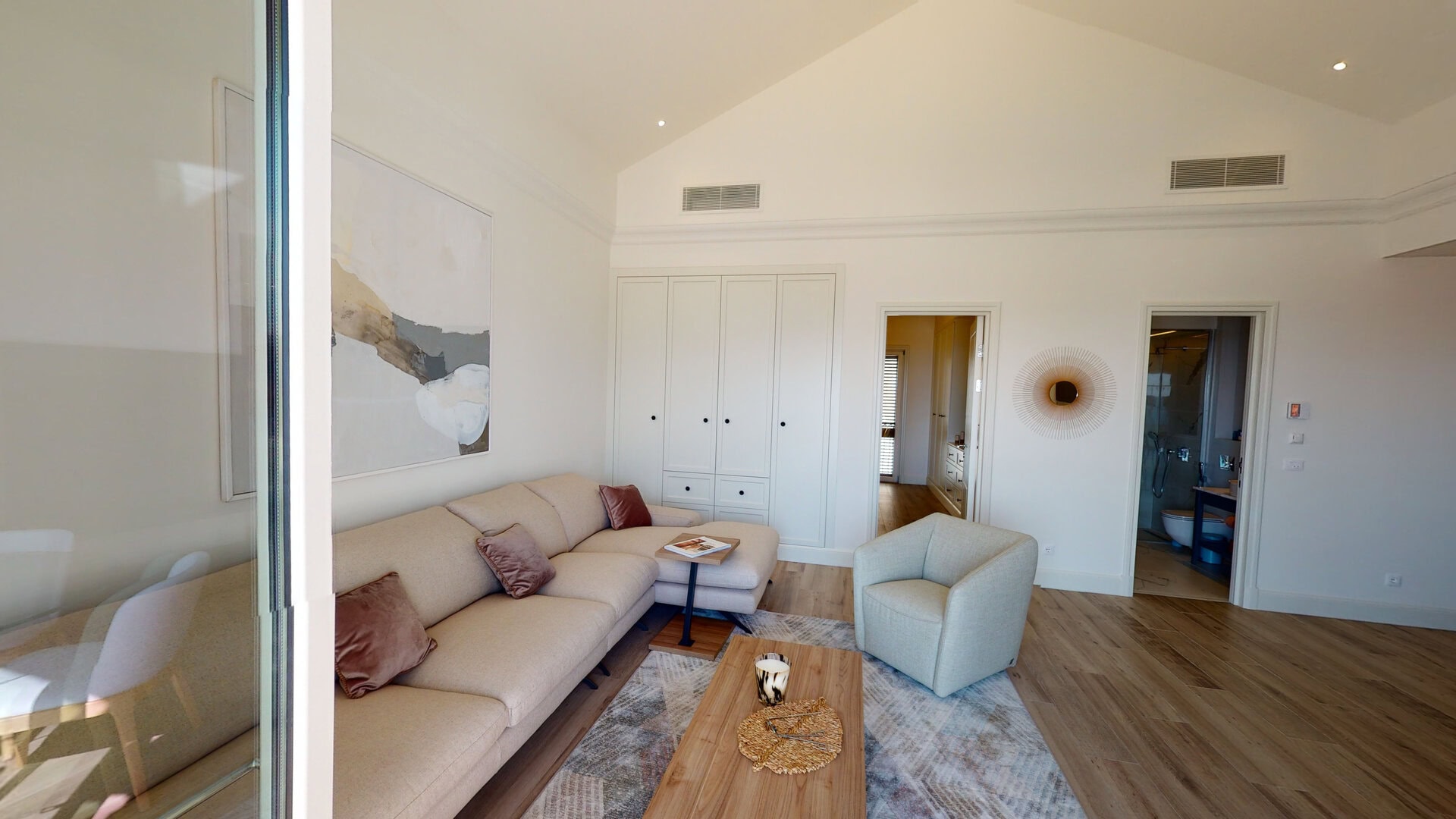 Stan obuhvata prostranu kuhinju, trpezariju I open space dnevni boravak, jednu spavaću sobu i kupatilo. Dnevni boravak se otvara ka prostranoj terasi sa panoramskim pogledom na more i marinu.