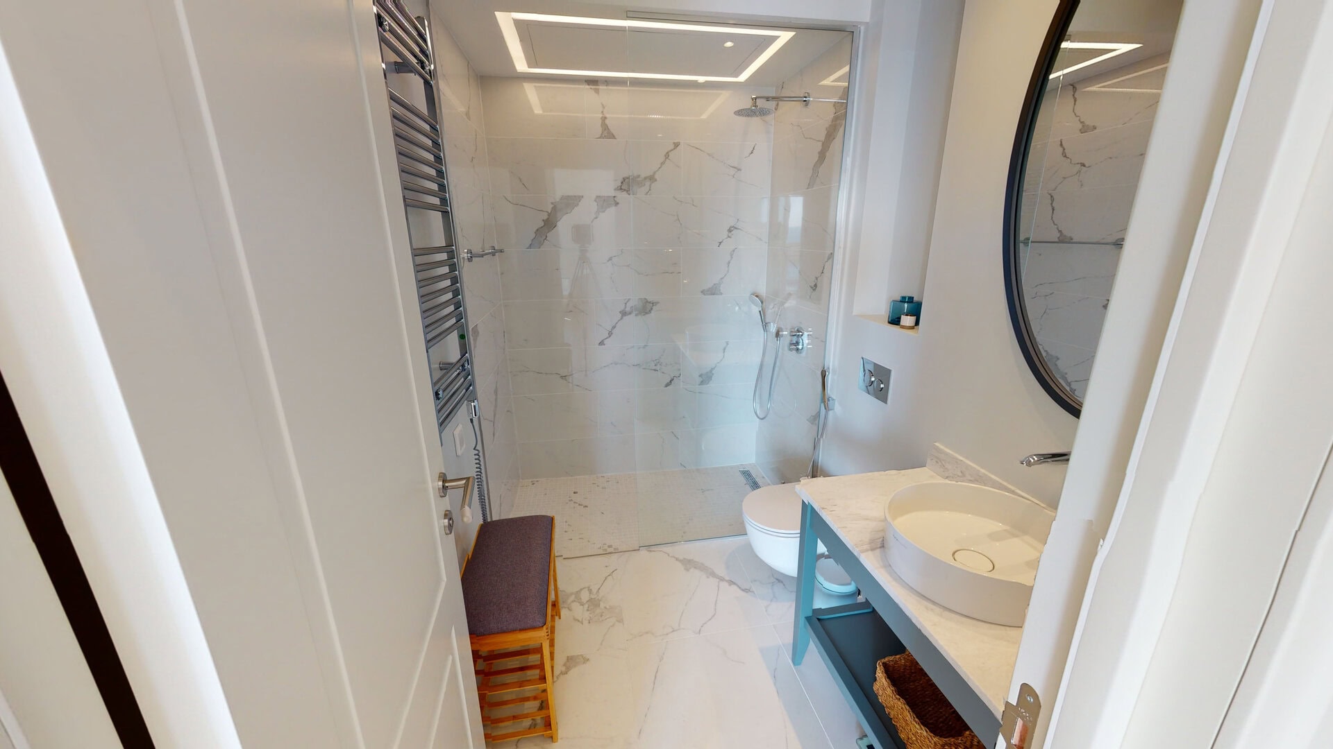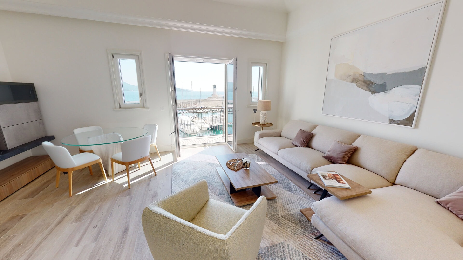 Pozicioniran u samom srcu marine, apartman se nalazi na korak od šetališta i svih sadržaja – uključujući supermarket, apoteku, ekskluzivne butike, restorane, kao i luksuzni hotel sa 5* i SPA centrom.