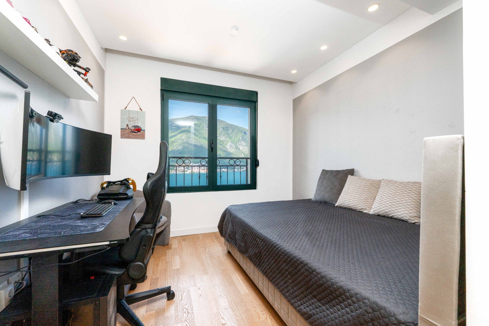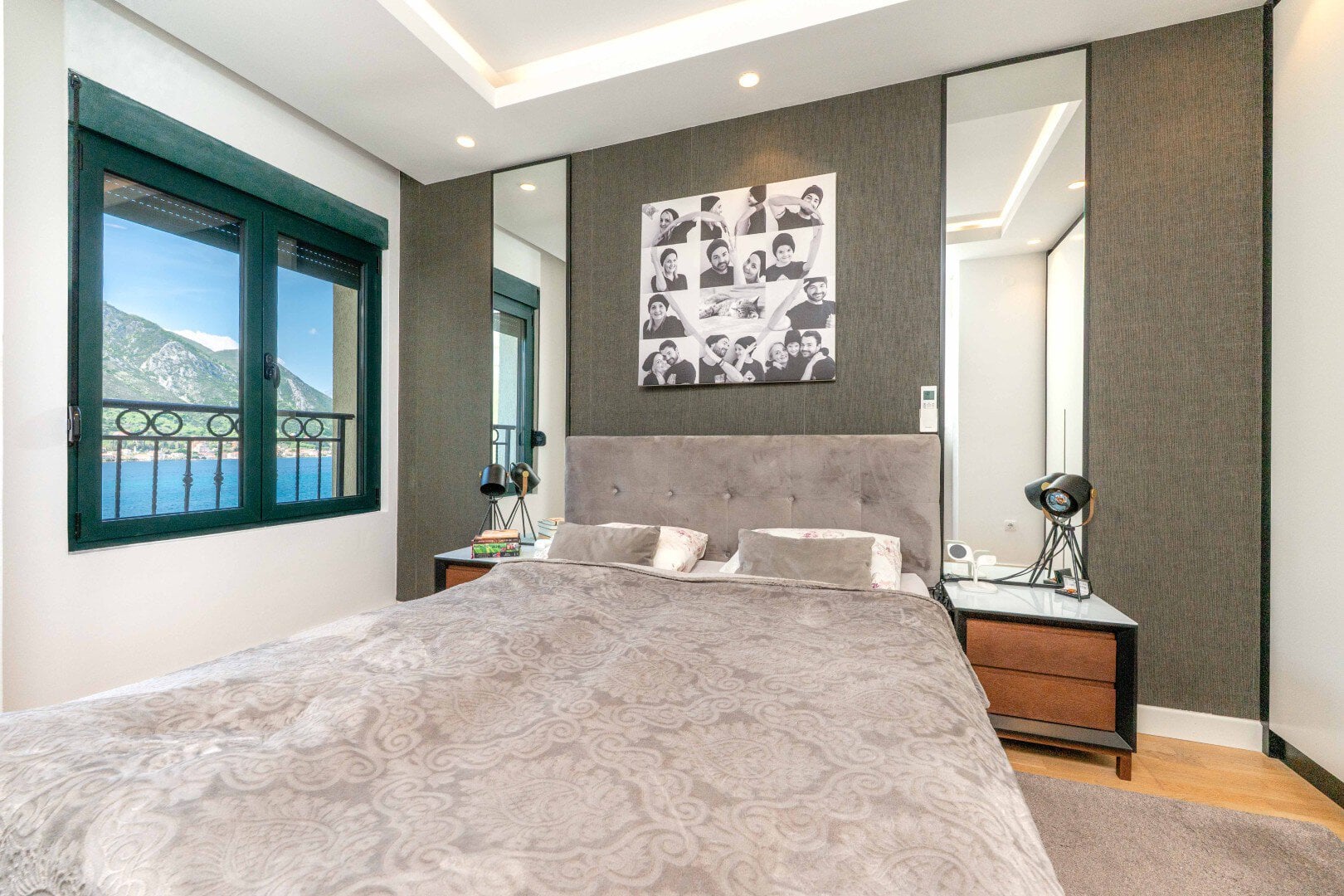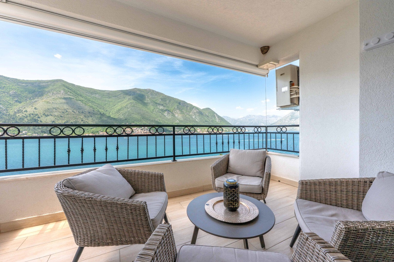 Luksuzan dvosoban stan blizu mora i kompleksa Huma u Dobroti, Kotor, sa otvorenim pogledom na more i zaliv, udaljen od mora oko 50m.