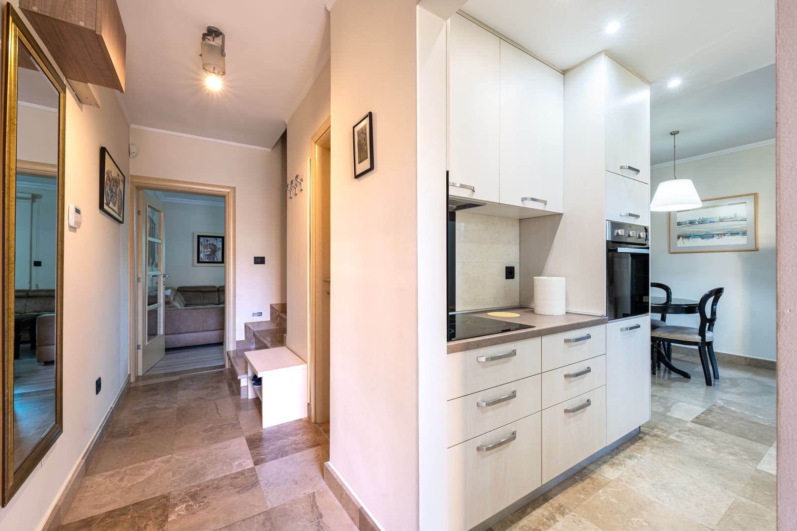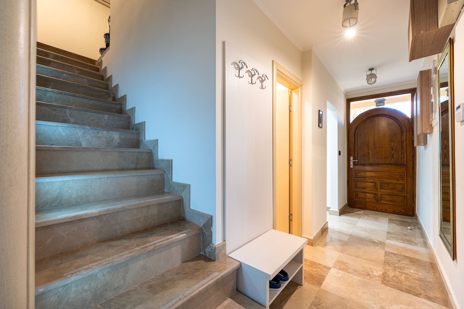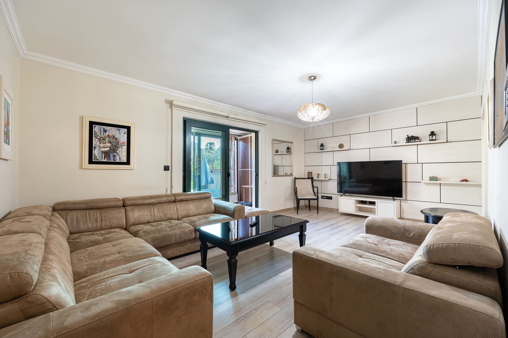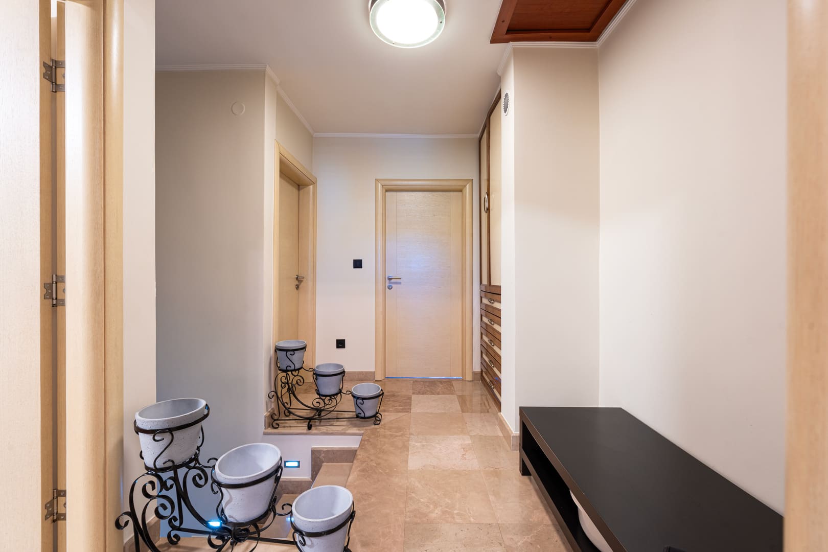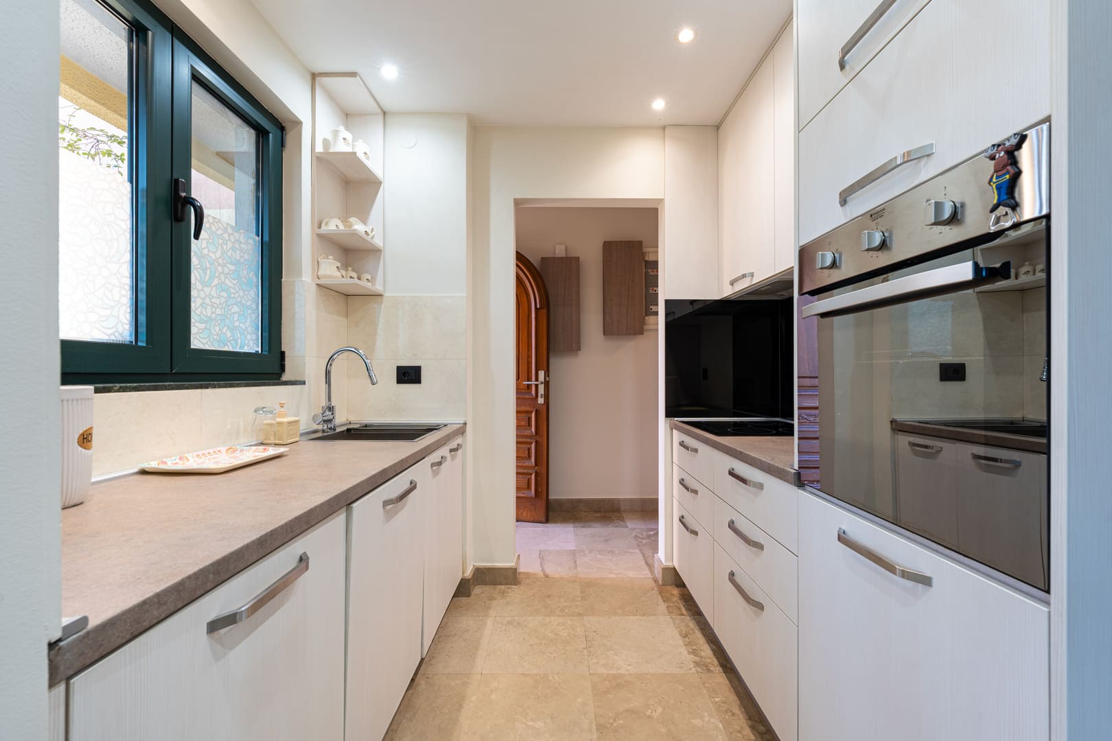 Enterijer je u svedenom, minimalističkom stilu, kvalitetnih prozvođača. Velike staklene površine omogućavaju da se unutrašnji prostor skladno poveže sa okruženjem, naglašavajući osećaj prostranosti i prirodne svetlosti.