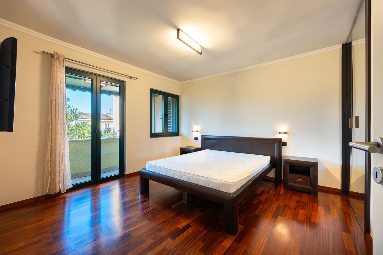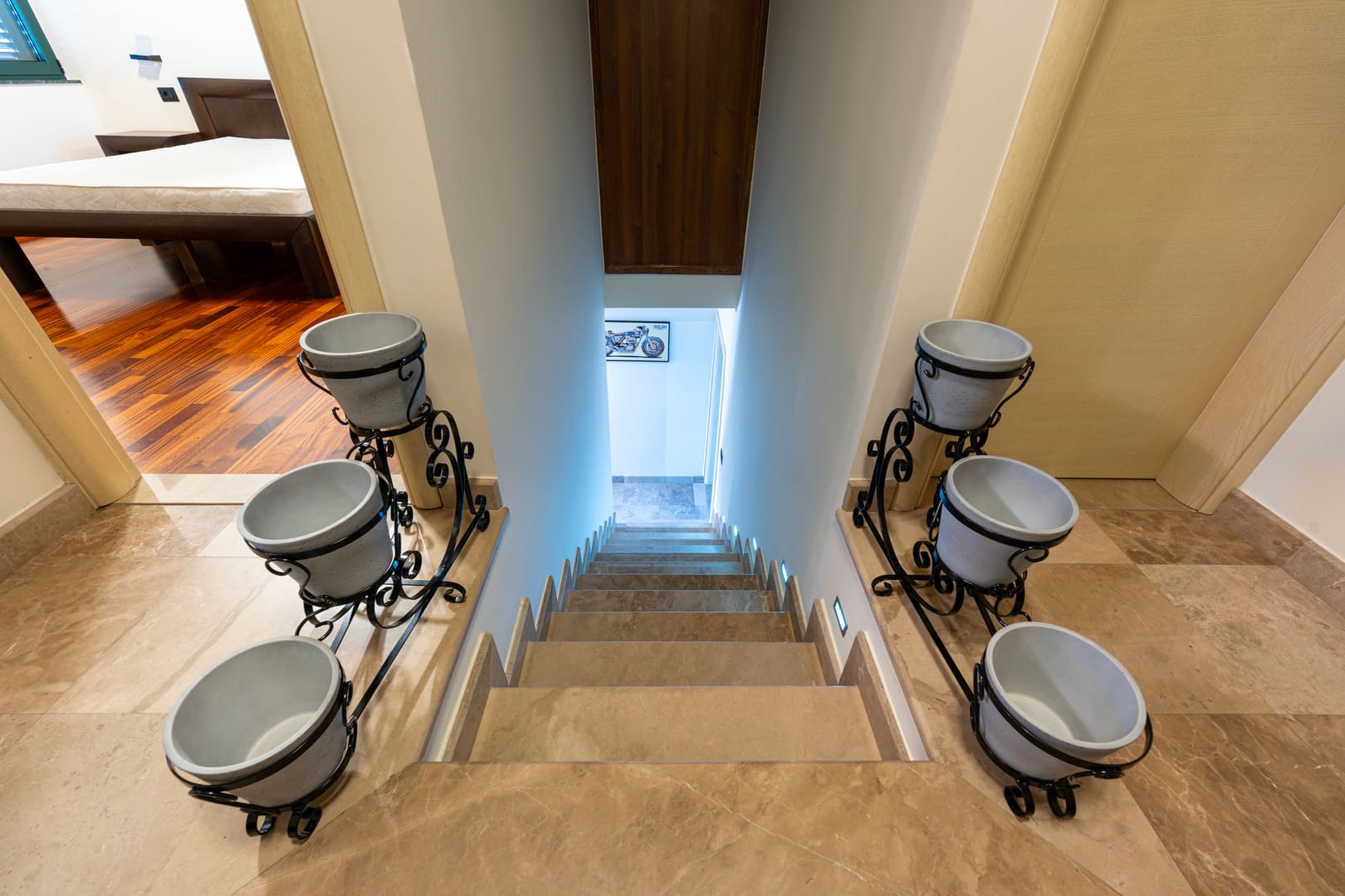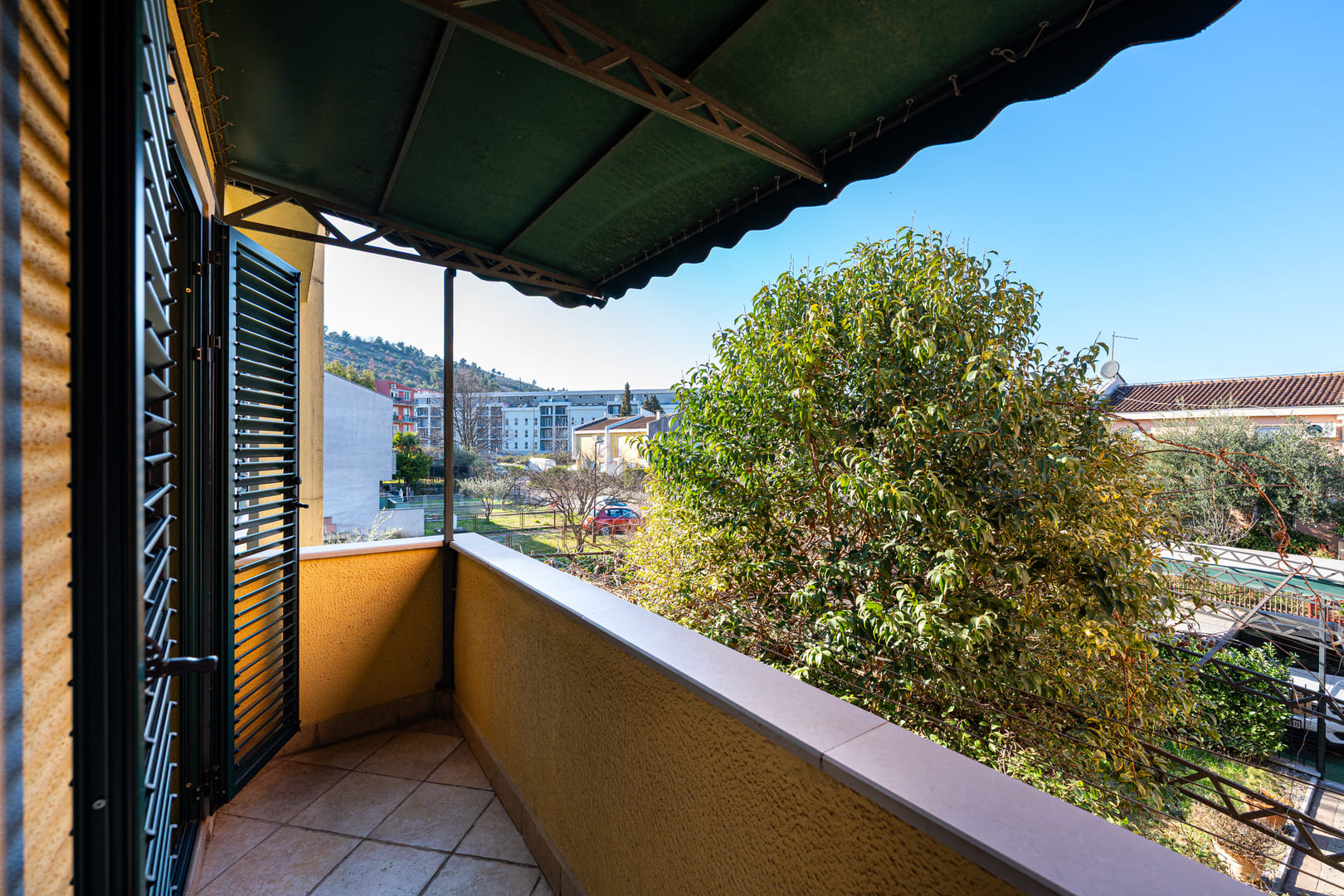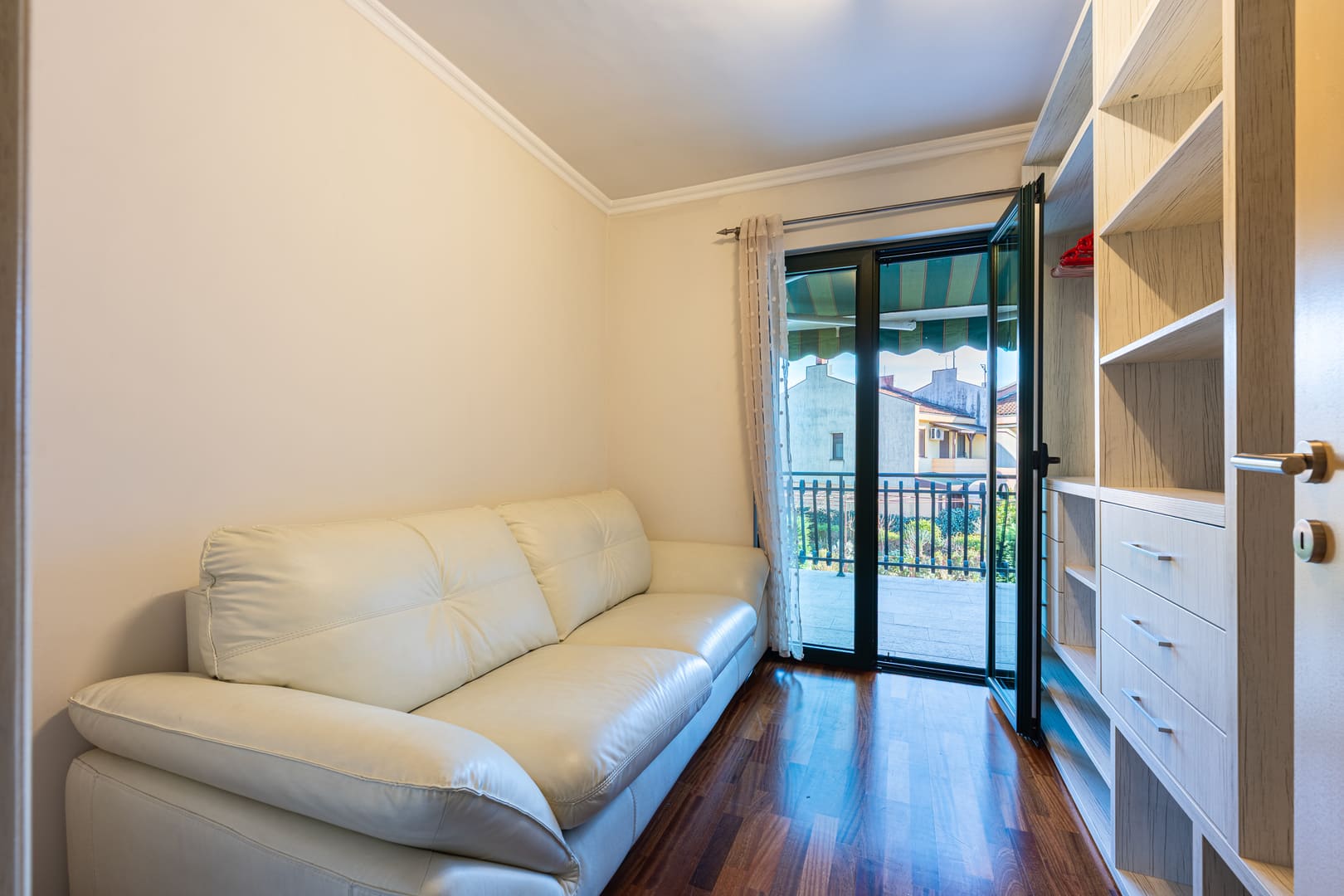Na spratu se nalaze tri spavaće sobe i kupatilo. Treća spavaća soba trenutno se koristi kao garderober. Svaka spavaća soba ima izlaz na terasu.