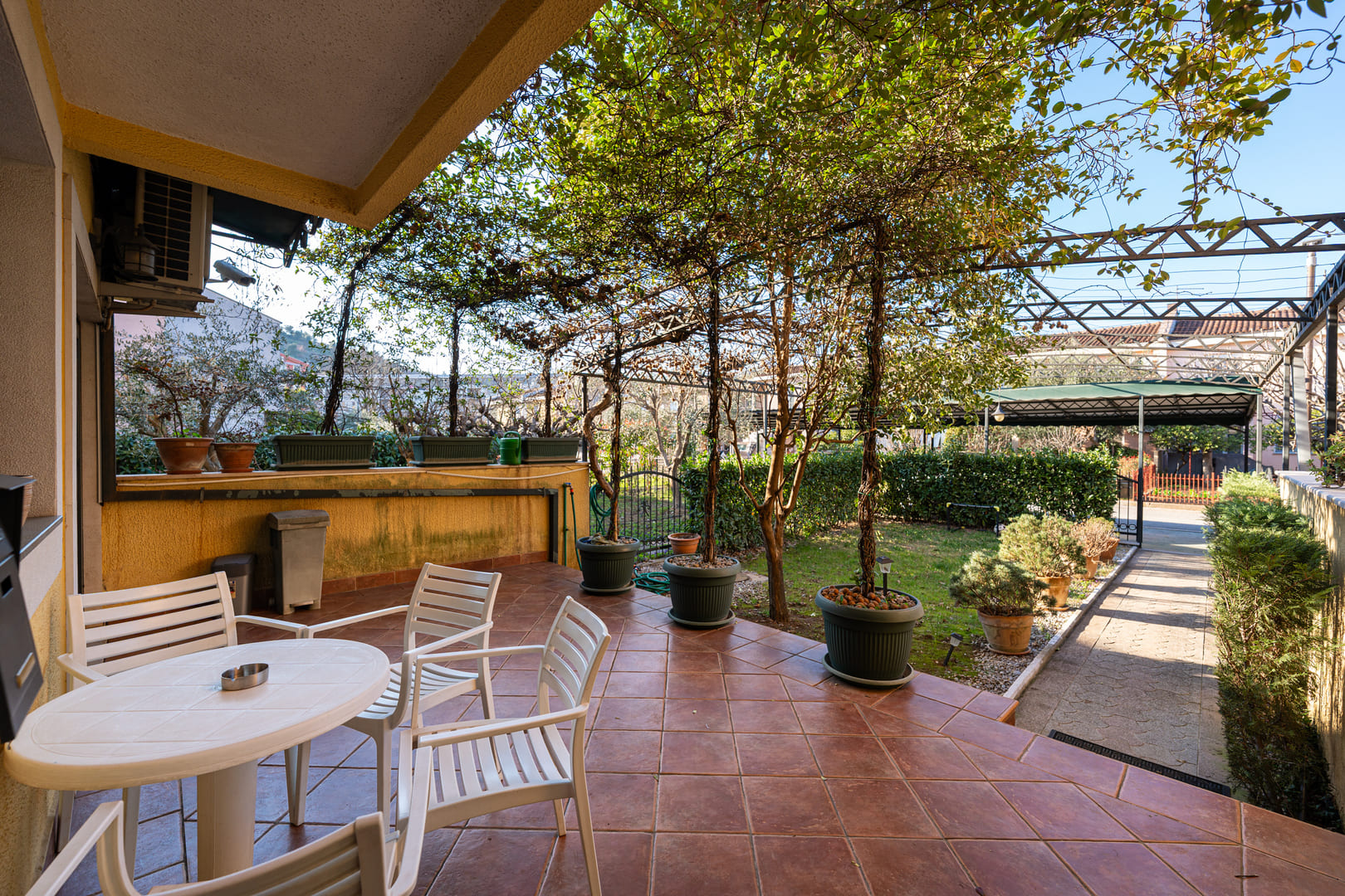 Postoje dva natkrivena, i jedno otkriveno parking mjesto u okviru placa na kojem se nalazi kuća.