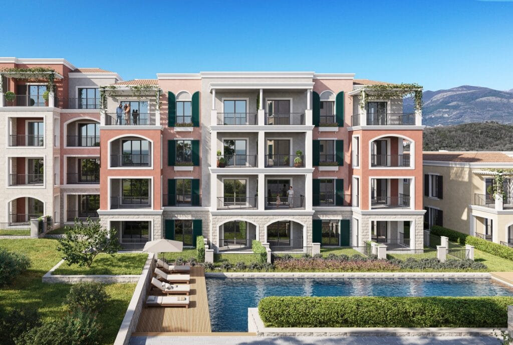 Jednosoban stan u izgradnji sa pogledom na bazen, Lustica Bay Centrale, Tivat